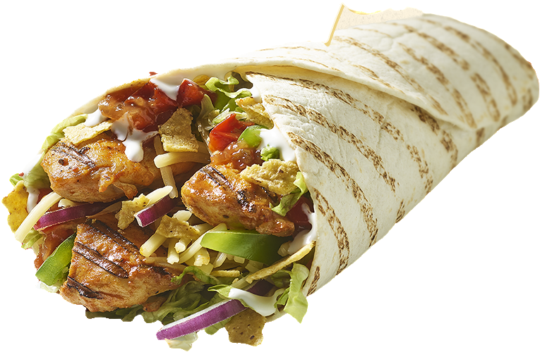 Tender chicken, melted cheese, fries, and homemade peri peri mayo, in a taco wrap