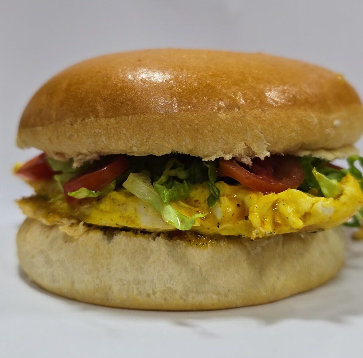 Tender chicken strips topped with melted cheese, spicy jalapeños, and mild mayonnaise, served in a soft, fluffy bun