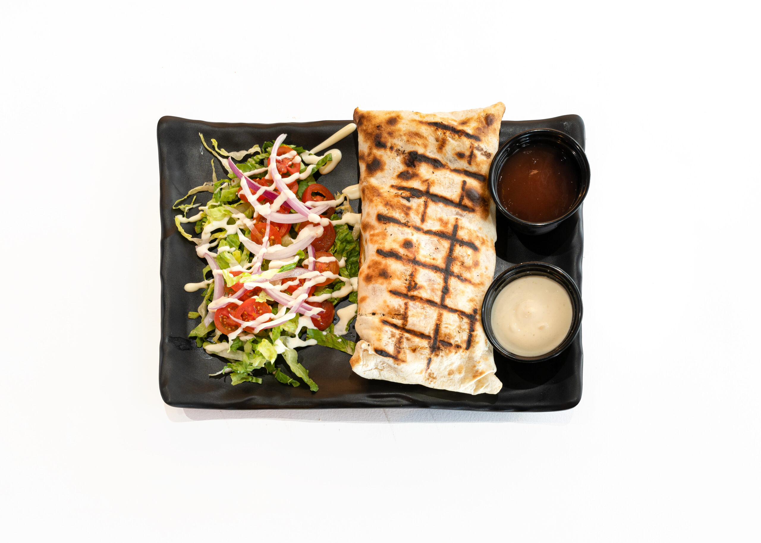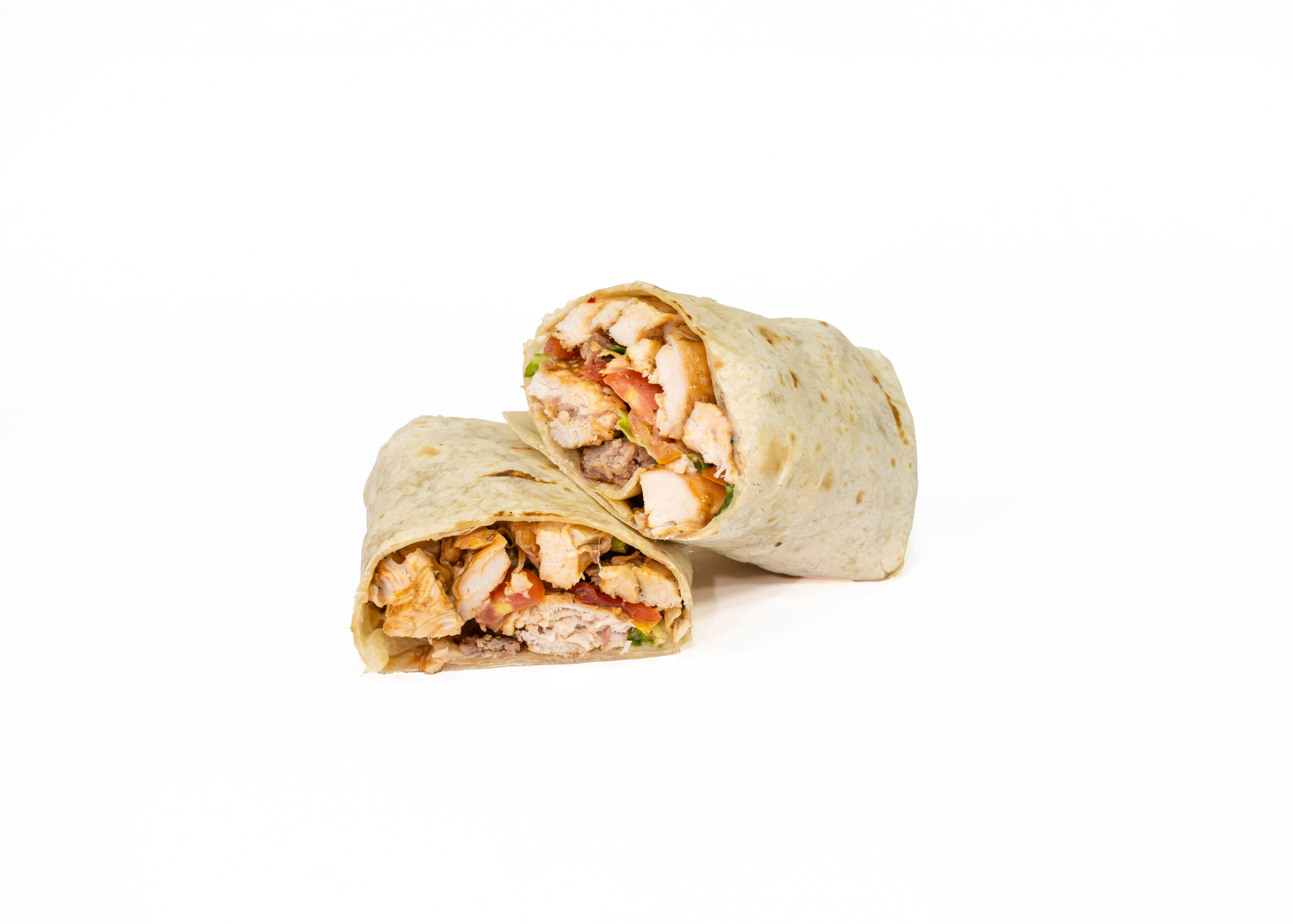 Grilled Peri Peri chicken fillet and juicy ground lamb steak, wrapped in a soft tortilla with melted cheese and a fresh salad.