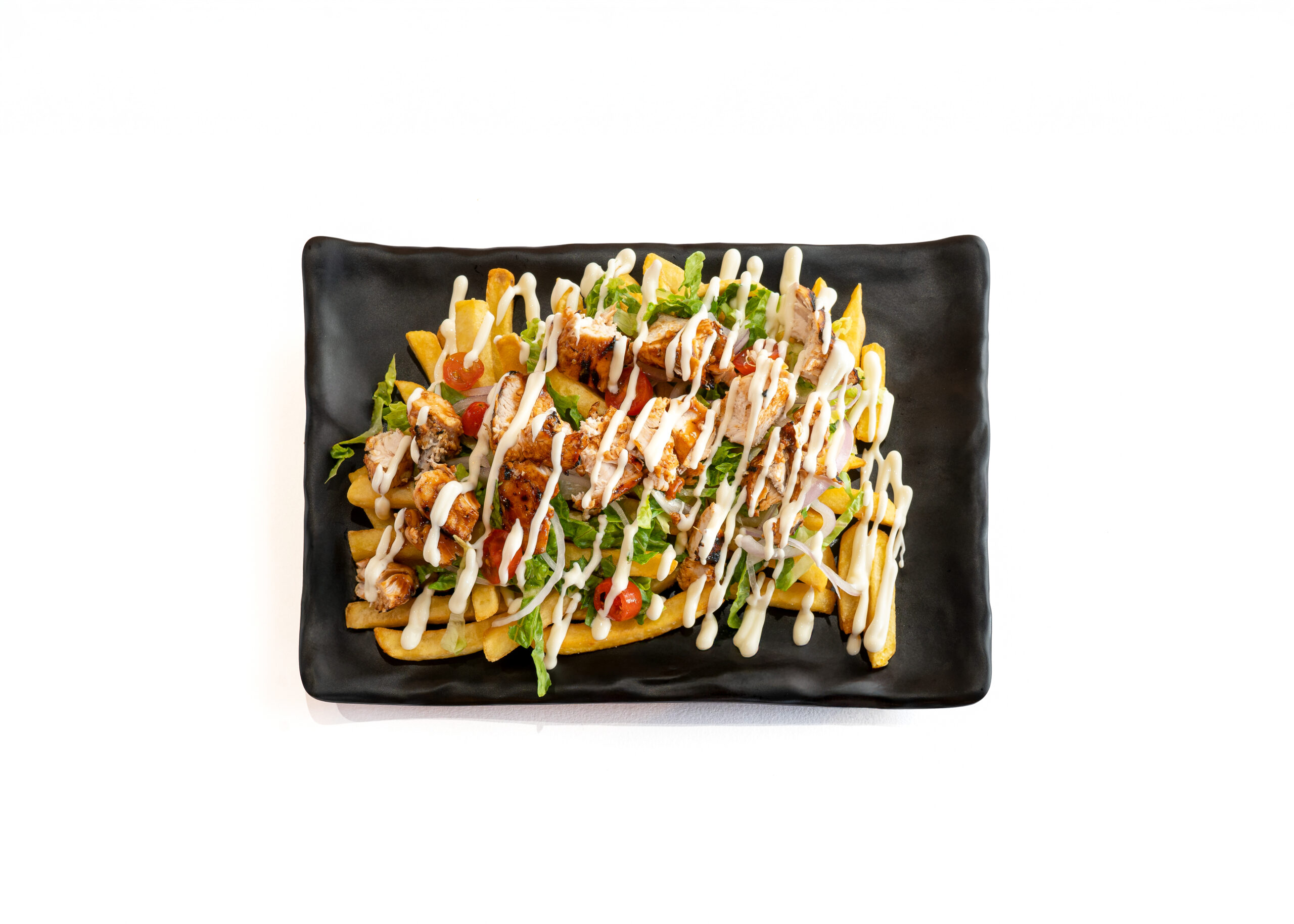 Crispy fries topped with flame-grilled chicken, melted cheese, spicy jalapeños, and our signature sauces