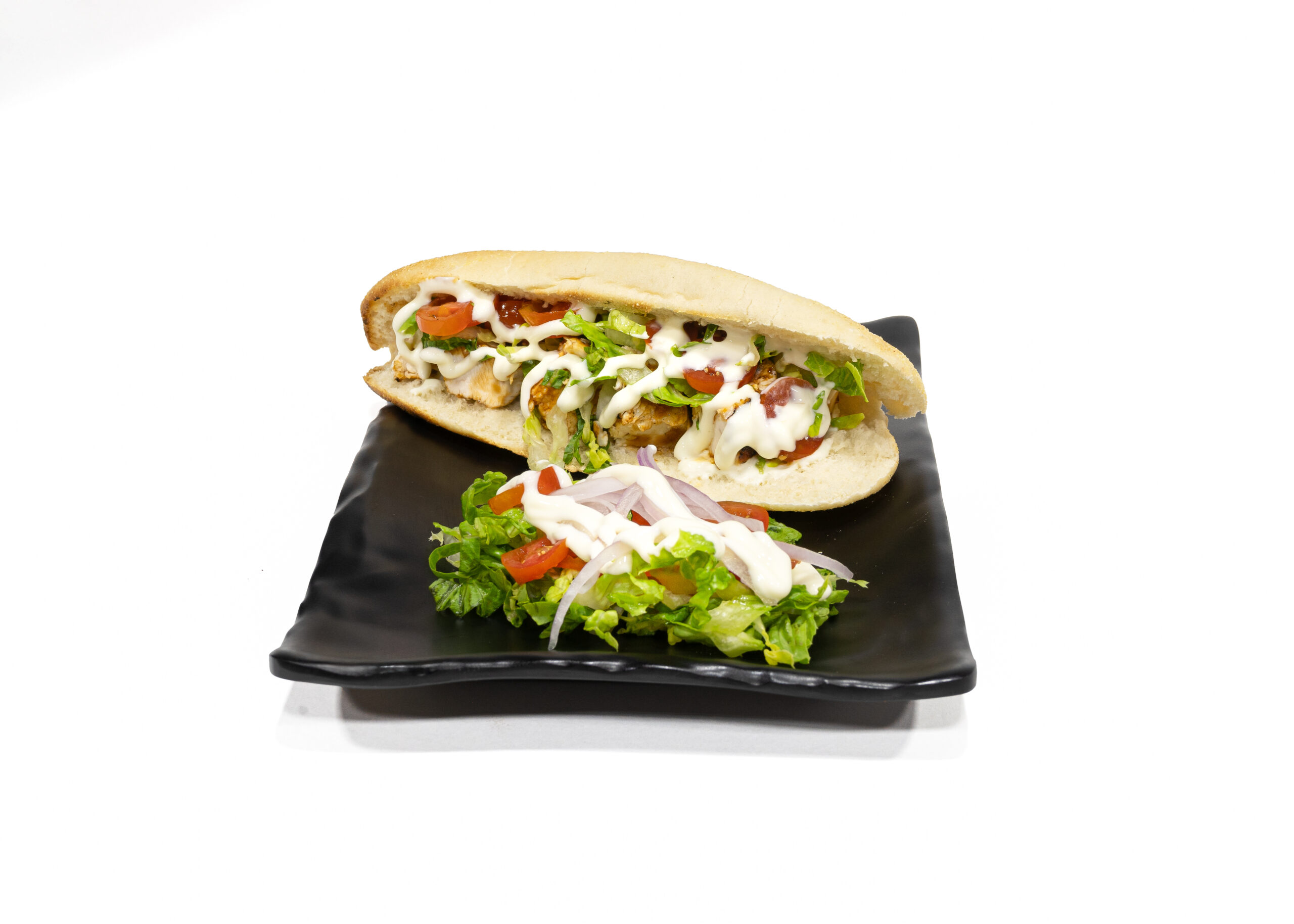 Flame-grilled chicken breast served with a fresh salad in a warm, toasted pita a deliciously satisfying classic..